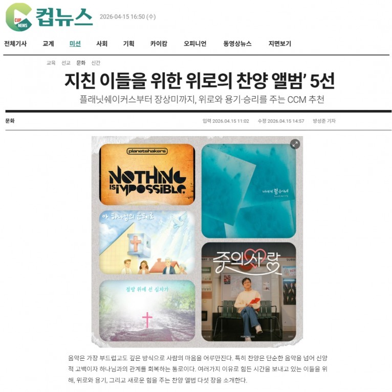 뮤직타임 [기획기사] 지친 이들을 위한 위로의 찬양 앨범’ 5선(크리스챤연합신문 컵뉴스)